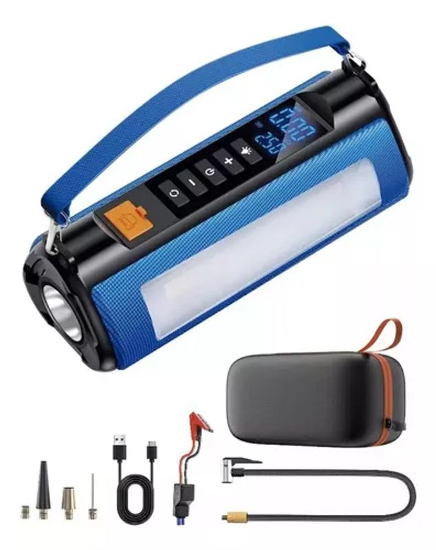 Cinco Funções: Inflação do pneu, arranque de emergência do veículo, iluminação de emergência, fonte de alimentação móvel e luzes de advertência do SOS.