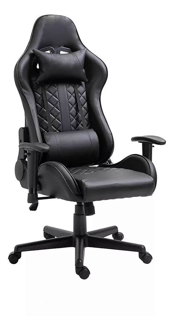 - Material: revestida em couro sintético, estrutura interna robusta, base giratória com rodízios .