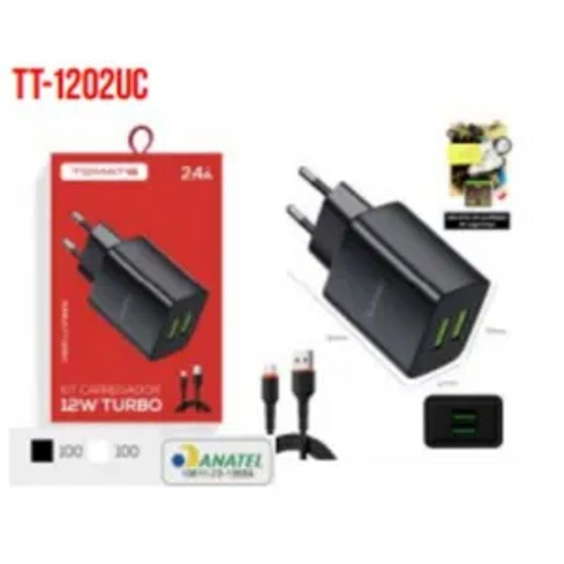 O Carregador Para Type-C Turbo com 2 Portas USB 12W 2.4A Tomate TT-1202UC é a solução ideal para quem busca praticidade e eficiência no carregamento de dispositivos com conexão Tipo-C. Com design moderno e compacto, este kit proporciona um carregamento rápido e seguro, seja em casa, no escritório ou em viagens.