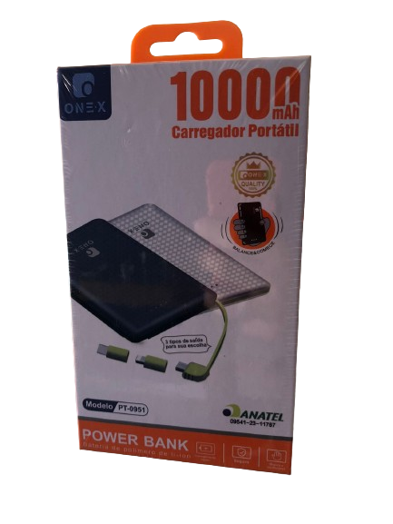 CARREGADOR PORTATIL POWER BANK 10.000MAH 3.7W ONEX PT-0951