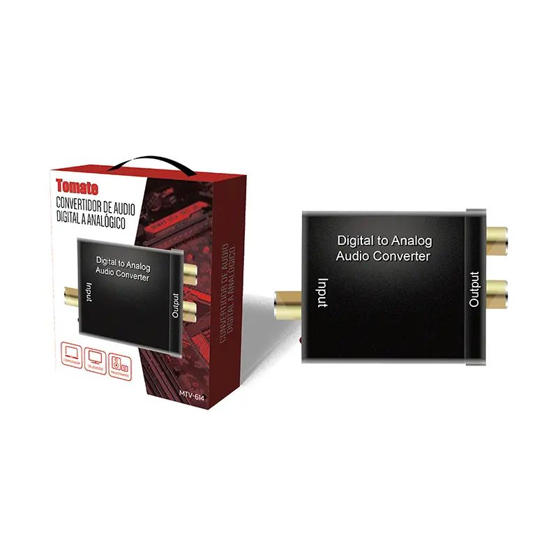 O Conversor de Áudio Digital para Analógico Tomate MTV-614 foi desenvolvido para atender tanto usuários domésticos quanto profissionais, proporcionando a conversão de sinais de áudio digital coaxial ou óptico Toslink para áudio analógico L/R, por meio de conexões RCA. Com este dispositivo, é possível conectar-se a diferentes dispositivos externos que possuem entrada RCA, garantindo versatilidade e praticidade em seu uso.