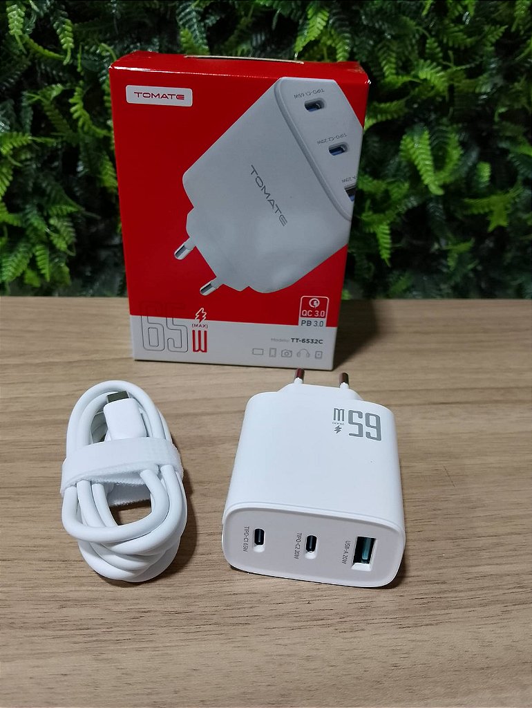 Kit Carregador Power Turbo 2 Type-C 1 USB 65W Tomate TT-6532C