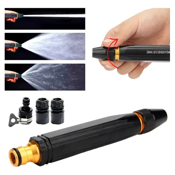 Serve para lavar carro, calçada, regar plantas, limpar vidros — o jato regulável é bastante útil