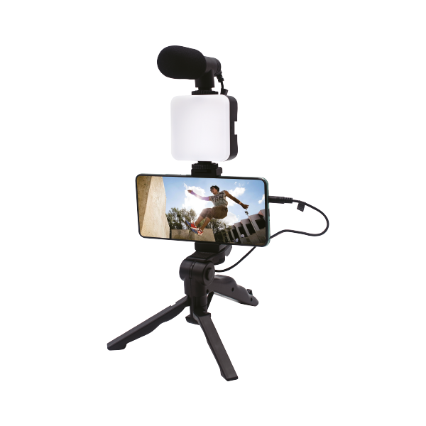 Eleve a qualidade de seus vídeos com esse Kit de Gravação 4 em 1! Adaptável para qualquer modelo de smartphone com seu suporte universal, grave vídeos com mais estabilidade utilizando um tripé resistente ou, se preferir, ele pode também ser utilizado como um suporte para gravação manual, luz LED de 6500K e um microfone para deixar seu vídeo com uma qualidade incrível (acompanha cabo P2 - P2)
