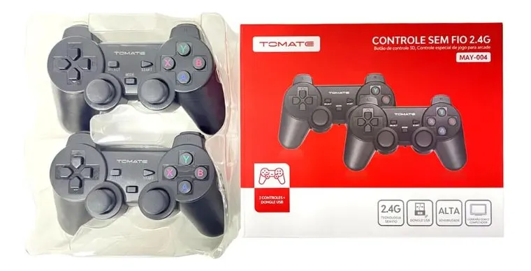🎮 KIT COM DOIS CONTROLES DE VIDEOGAME SEM FIO 2.4G TOMATE MAY-004