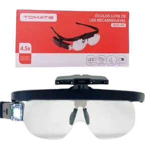 O MXW‑003 é um óculos lupa com LED recarregável, ideal para trabalhos que exigem precisão e ampliação, como manicure, estética, eletrônica, colecionismo, relojoaria e atividades similares