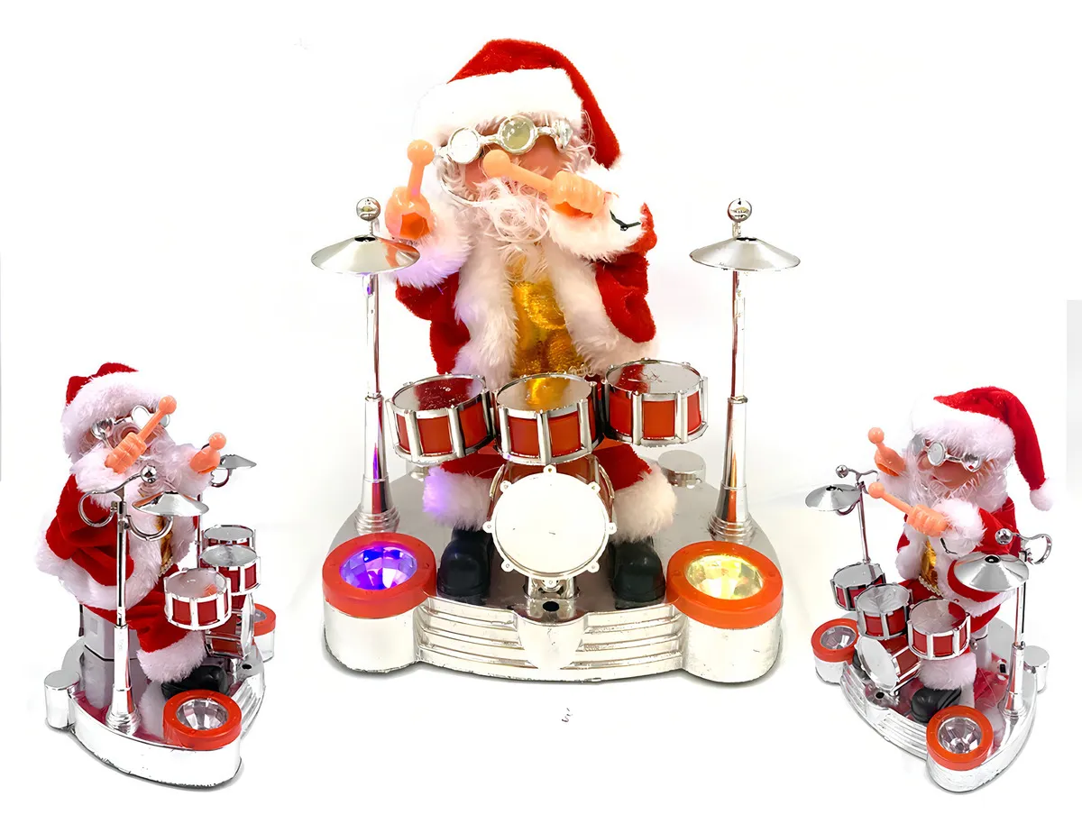 🎅 PAPAI NOEL BATERISTA COM SOM E LUZ TOMATE MSD-017