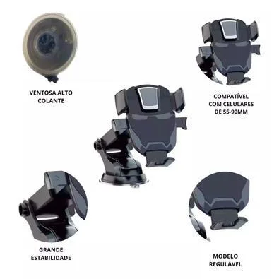 Fixação Segura: Ventosa de silicone altamente aderente, que pode ser fixada em vidro, painel e outras superfícies.